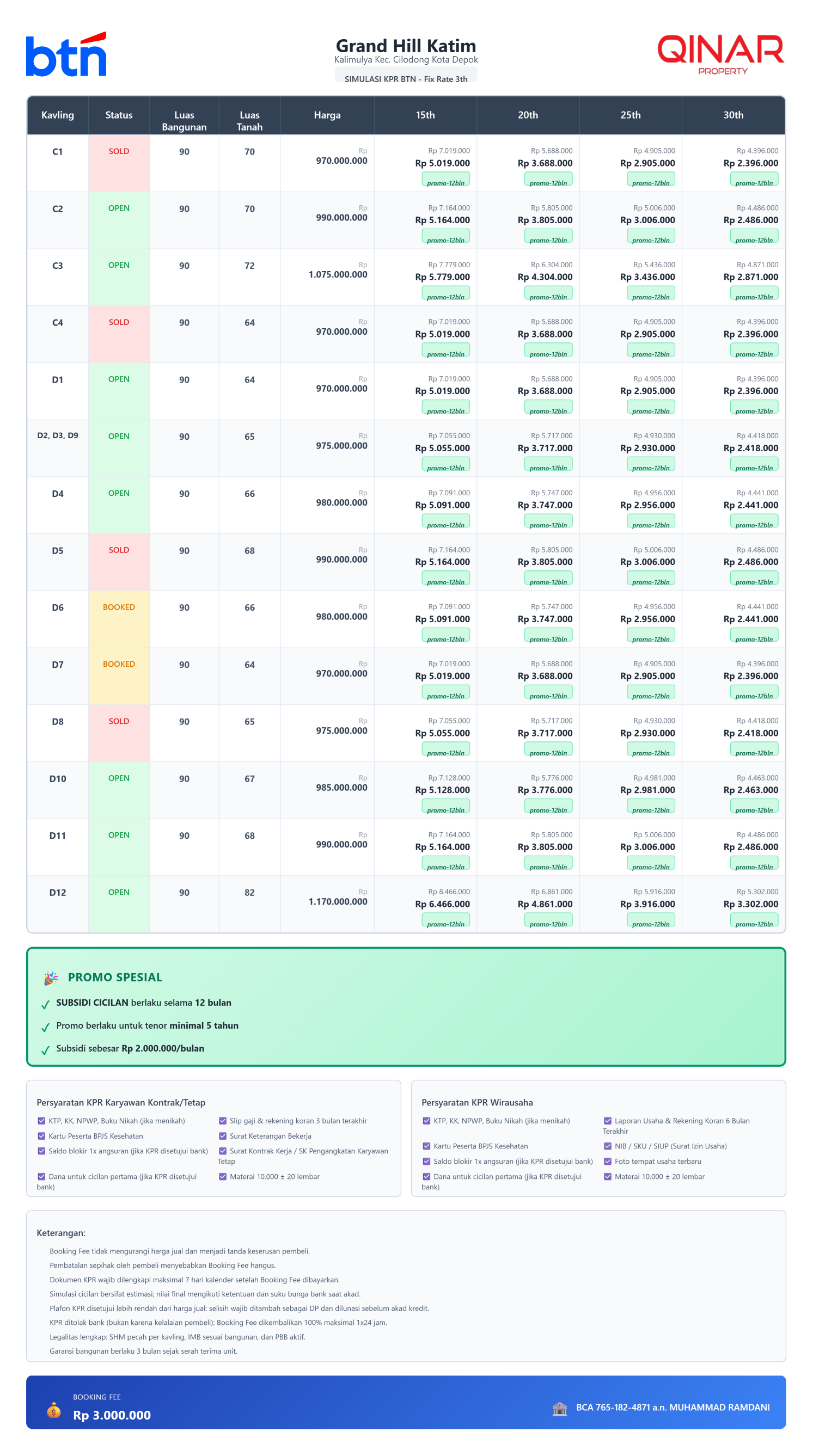 Jangan lewatkan kesempatan untuk memiliki hunian berkualitas di lokasi yang strategis. Segera hubungi kami untuk mendapatkan informasi lebih lanjut dan jadwalkan kunjungan ke Grand Hill Katim. Mari wujudkan impian Anda untuk memiliki rumah yang nyaman dan aman bersama keluarga!