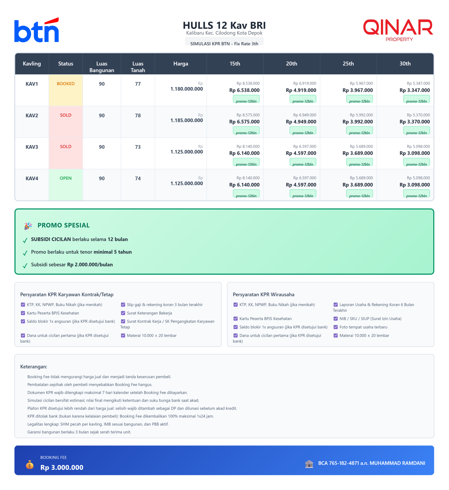 **Deskripsi Properti: Hulls 12 Kav BRI**