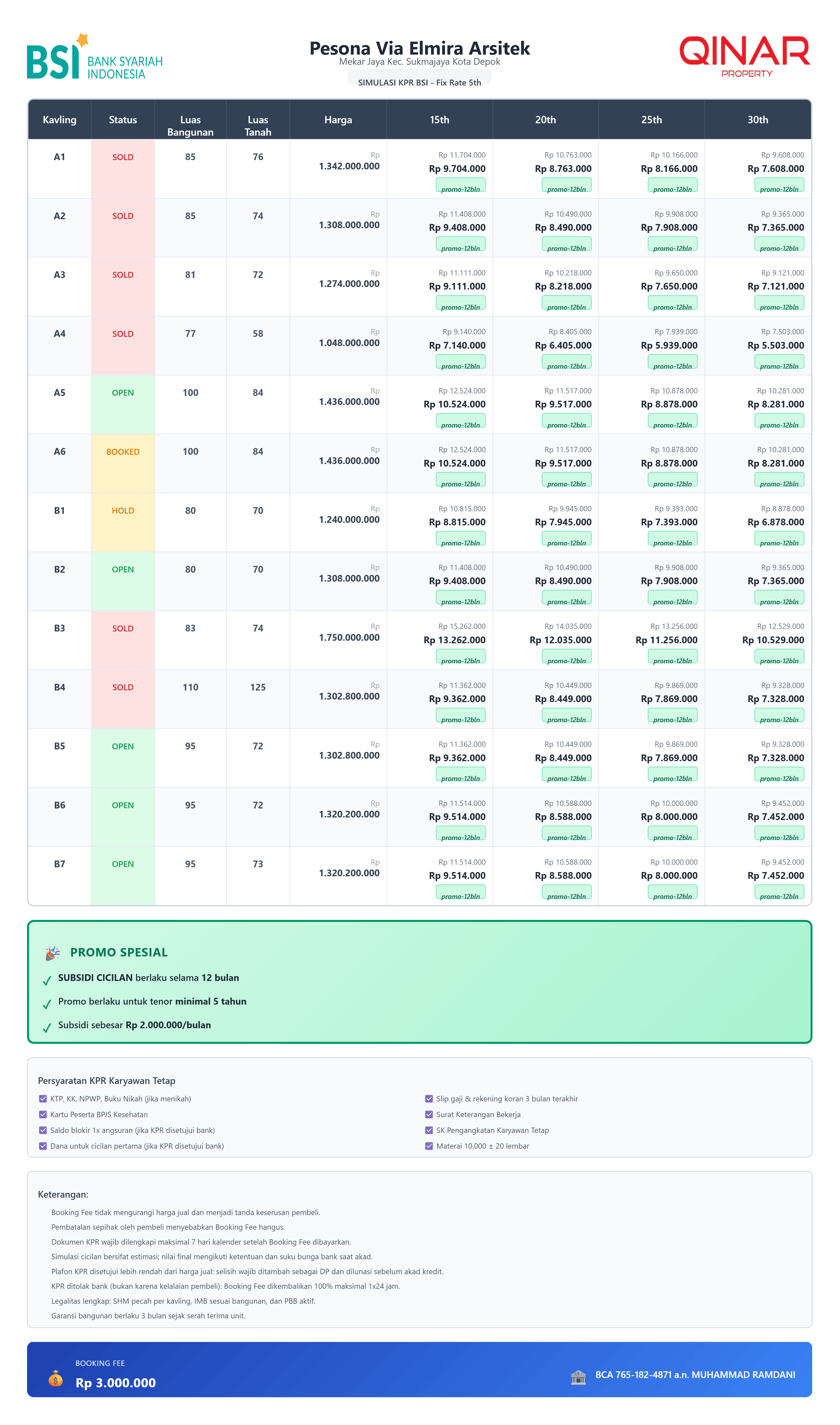 Jangan lewatkan kesempatan untuk memiliki hunian yang nyaman, aman, dan strategis ini. Segera hubungi kami untuk informasi lebih lanjut dan jadwalkan kunjungan ke Pesona Via Elmira Arsitek. Raih masa depan yang lebih baik dan investasikan di rumah impian Anda sekarang juga!